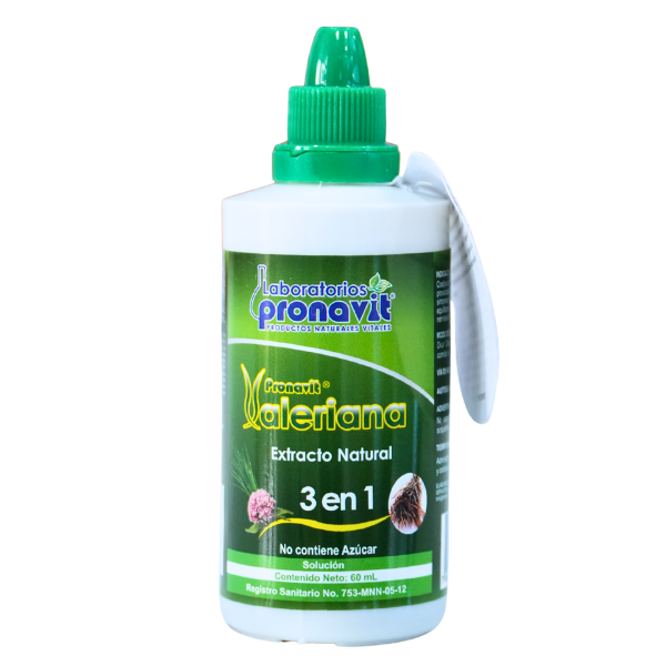 Valeriana 3 en 1 60 mL – Pronavit es un complemento herbal líquido formulado para favorecer el relax, la calma y la conciliación del sueño. Se presenta en un frasco de 60 mL con concentración de extracto de raíz de valeriana, pensado para usarse en gotas y de fácil toma diaria.
