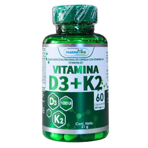 Vitamina D3 + K2 – 60 cápsulas – Pharma Iris es un suplemento dietético cuidadosamente formulado para aportar dos micronutrientes clave en sinergia: la vitamina D3 (colecalciferol) y la vitamina K2 (menaquinona). Esta combinación está orientada a brindar soporte para la salud ósea, vascular e inmune, aprovechando el papel de la D3 en la absorción del calcio y el de la K2 en la correcta redistribución del mismo hacia los huesos y lejos de los tejidos vasculares. El frasco contiene 60 cápsulas, lo que permite un suministro prolongado y continuo dentro de una rutina de bienestar.
